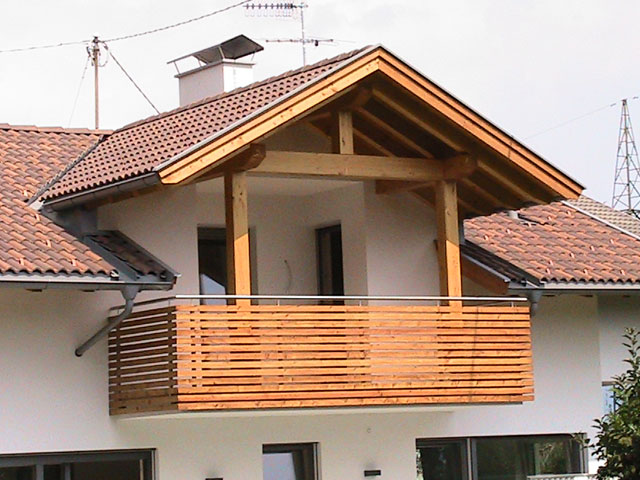Planung, Abbund und Montage von traditionellen und modernen Balkonen, Ausführungen in massiven Holz oder modernen Materialien wie z.B. HPL-Platten, Tragkonstruktionen in Holz für Balkone und Terrassen.